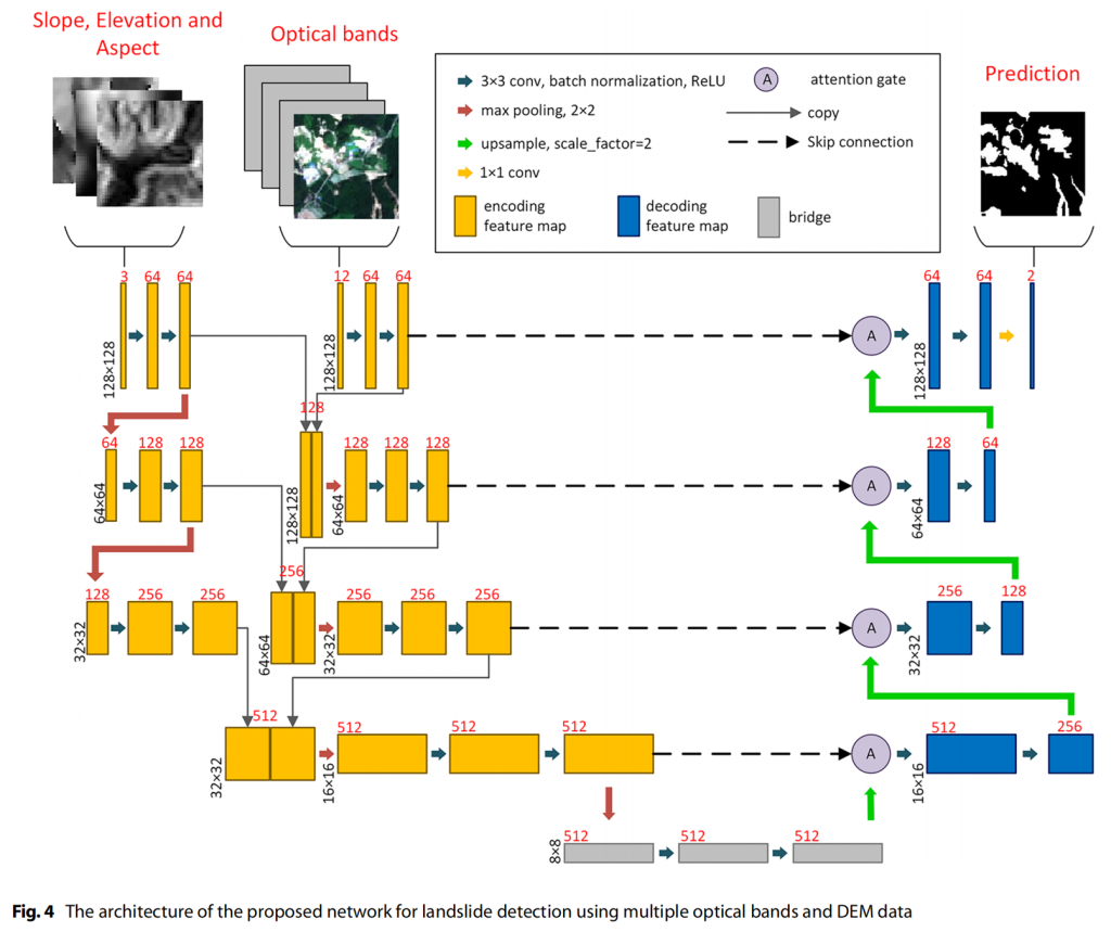 基于此,该论文提出一种针对中分辨率遥感影像的滑坡像素级检测方法,结合 Sentinel-2 多光谱影像与 NASADEM 的地形信息,利用改进的 U-Net 架构,以实现大范围、低成本的滑坡制图。